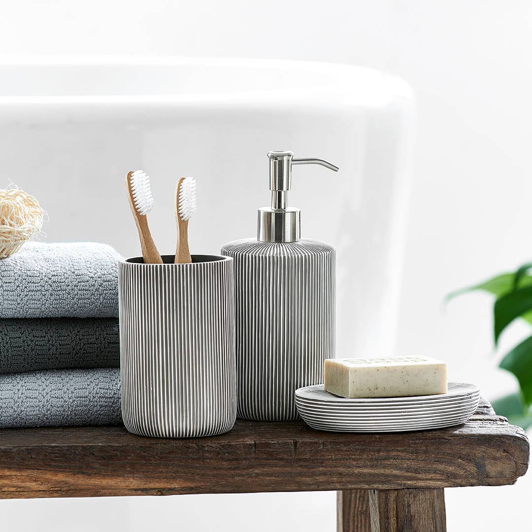 With a textural stripe design, the Wyatt bathroom accessories add a touch of modern style to any bathroom.