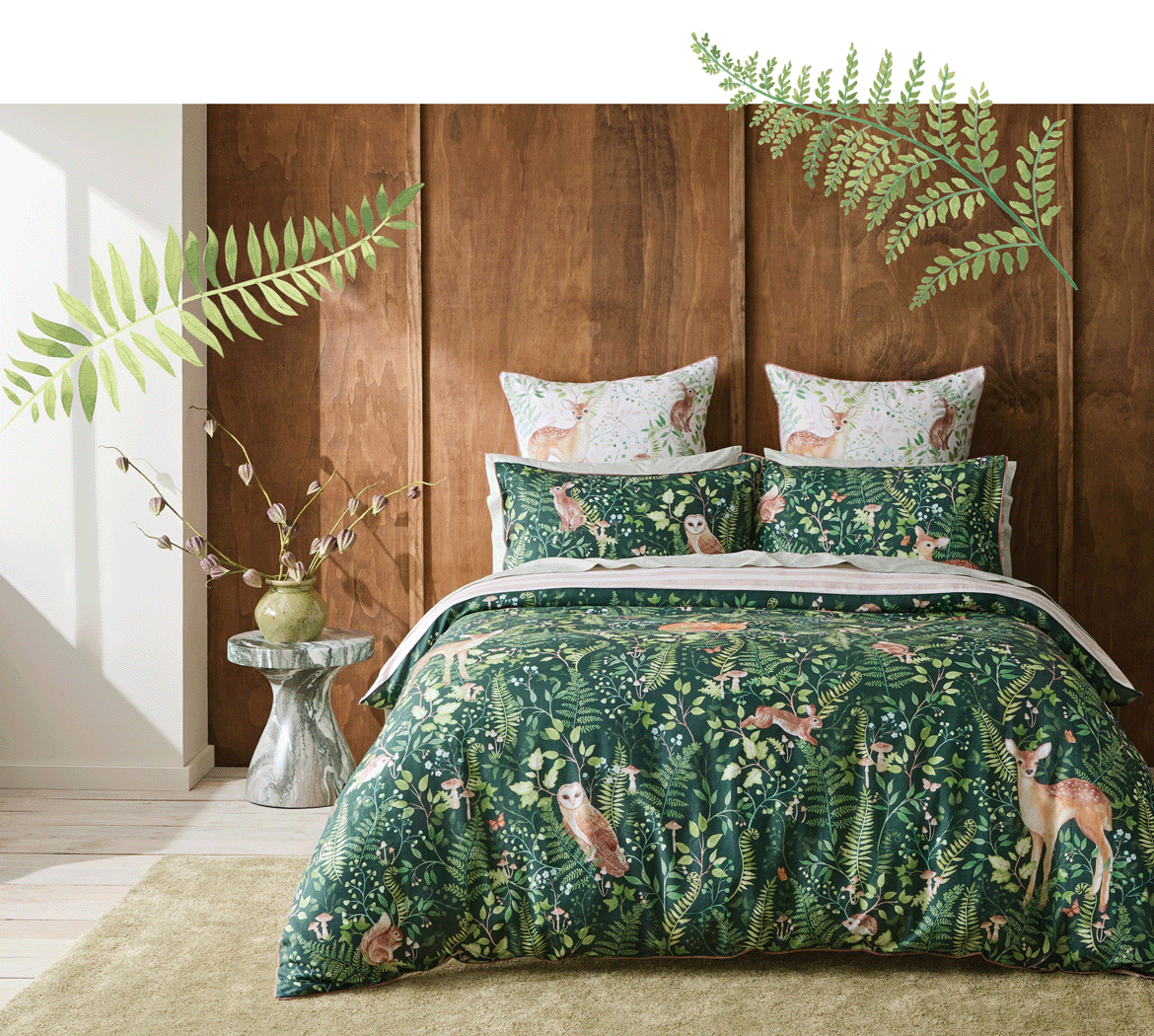 Hand-painted in our Melbourne studio, the Folklore Quilt Cover is filled with beautiful detail and lush forest greenery. Take a look behind the design of our latest in-house favourite.