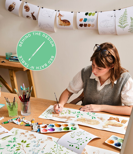 Hand-painted and developed in our Melbourne studio, Folklore gives you the feeling of being immersed in an enchanted forest. Curious woodland creatures, lush foliage and dreamy little details fill this design with life. And yet, despite all its whimsy, there’s an unmistakable sense of calm. We spoke to our talented in-house designer about the creative process and inspiration behind Folklore.