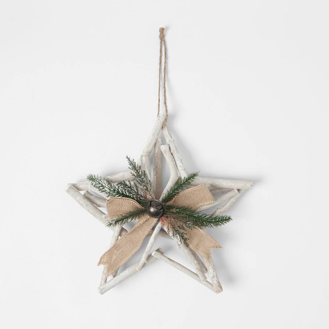 LU Wooden Star Wreath w Snowy Pine: L 36 cm, Wood/Plastic, 19702301