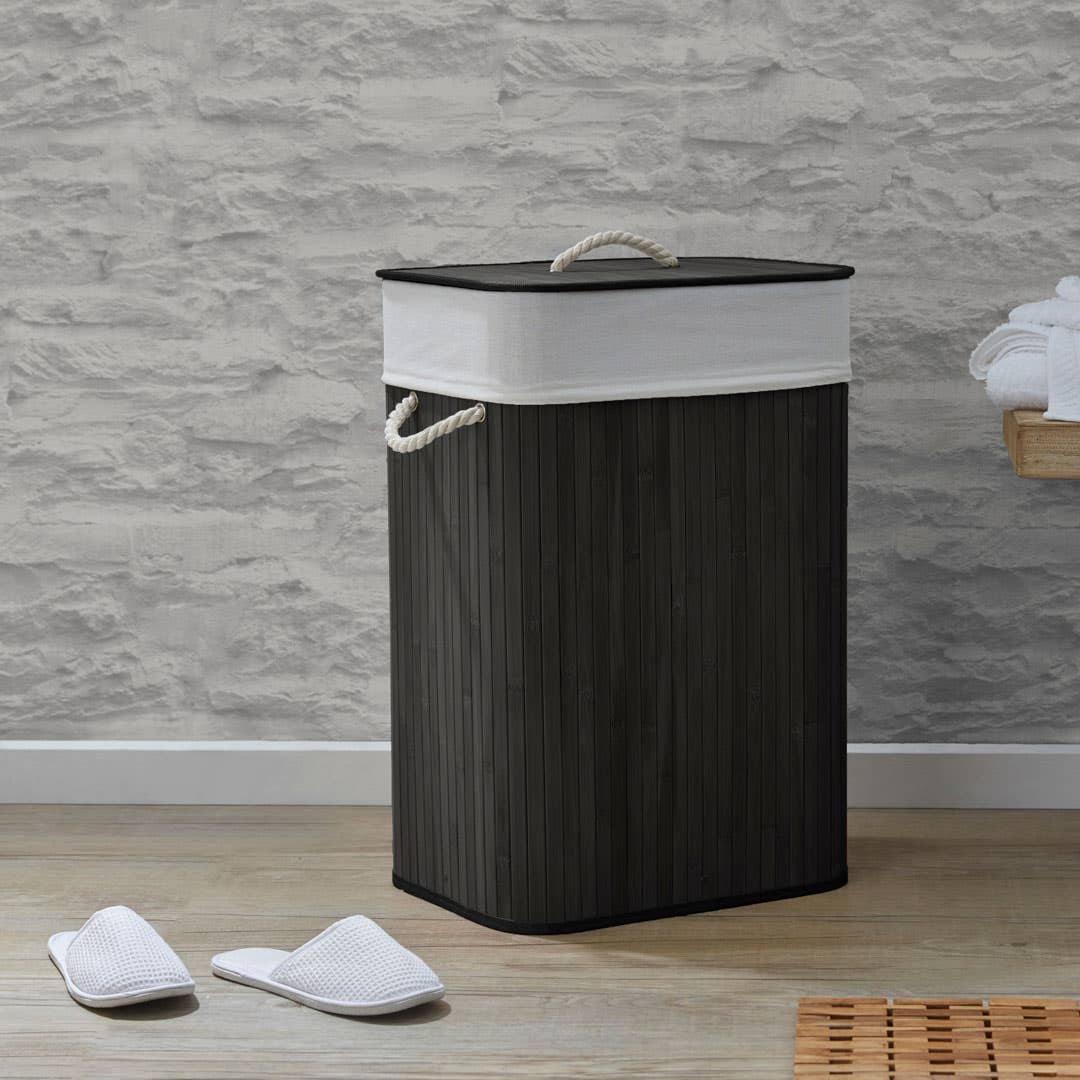 Collapsible Bamboo Hamper w Rope Handles: L 40 x W 30 x H 60 cm, Outer: Bamboo Lining: polyester/cotton, 20490704