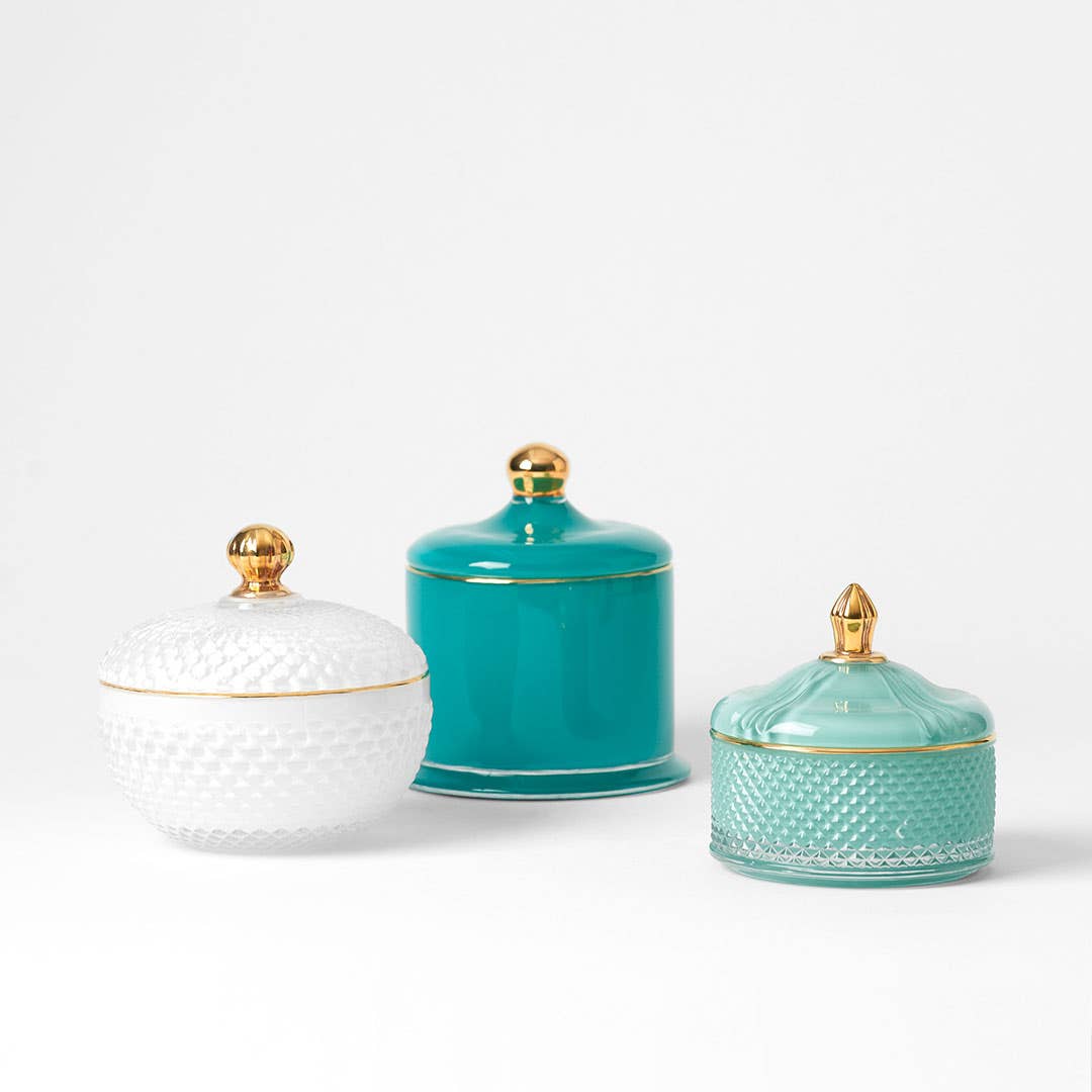 Glass Covered Trinket Dish Tall / Turquoise (on the books)