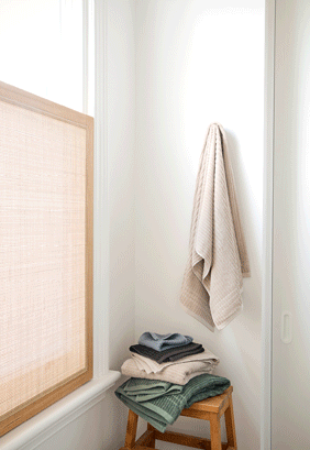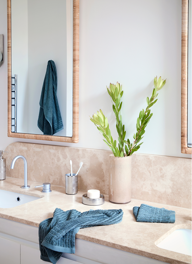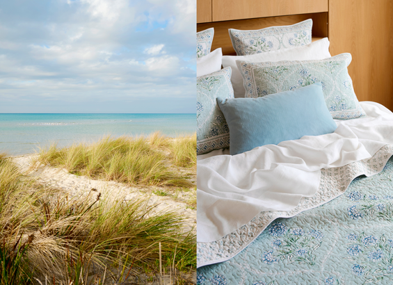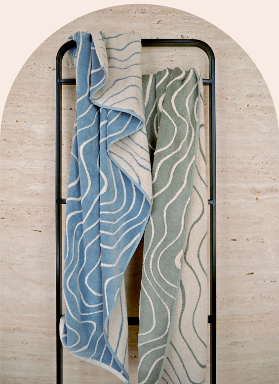 Take some time to unwind with calming additions to your bathroom, inspired by ocean hues. Indulge in the luxury of soft textures and beautiful woven details.