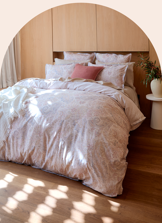 Delicate patterns and lustrous textures exude classic elegance. Soft, inviting additions bring your sanctuary to life.